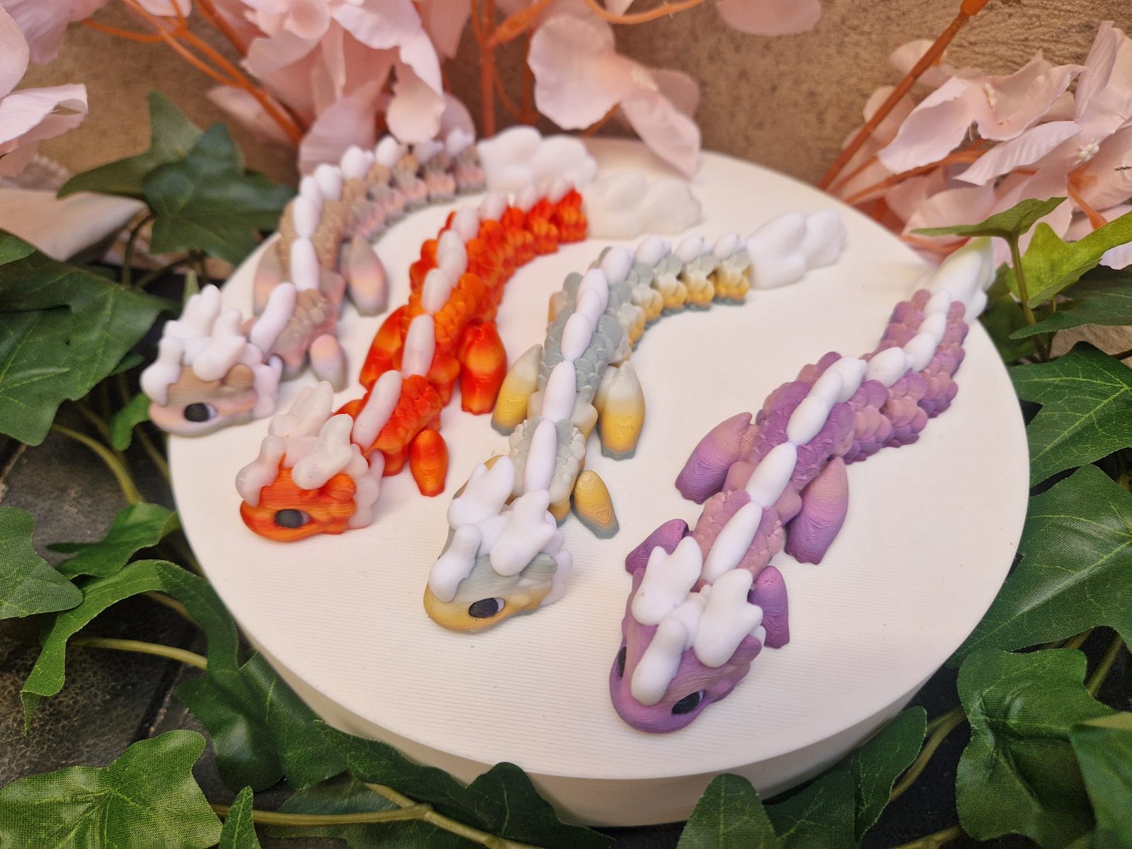 Découvrez cette collection de mini dragons articulés au design inspiré des nuages, entièrement réalisés en impression 3D en PLA, un matériau léger issu de ressources végétales.
