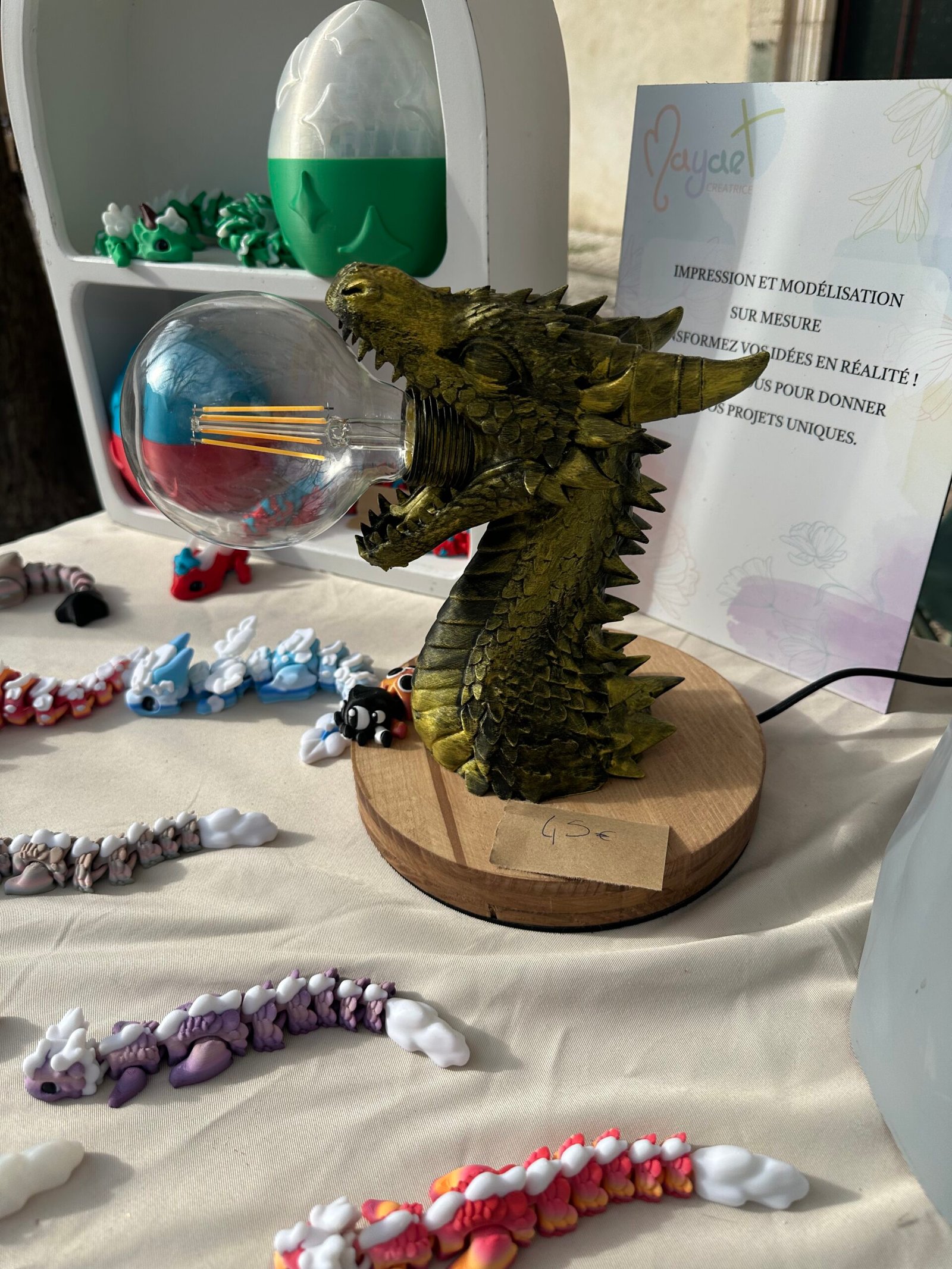 Cette lampe est idéale pour les amateurs de dragons, de fantasy et d’objets uniques réalisés grâce à l’impression 3D.